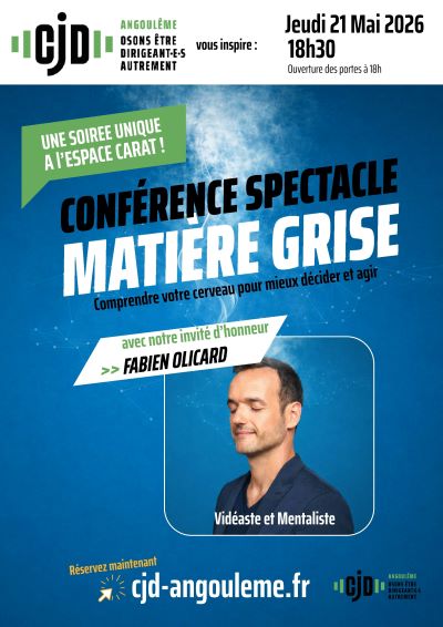Comprendre son cerveau pour mieux agir : le CJD Angoulême propose, le jeudi 21 mai, à l’Espace Carat, une expérience inédite mêlant conférence-spectacle, exploration collective et convivialité. Une soirée ouverte [...] Lire la suite »