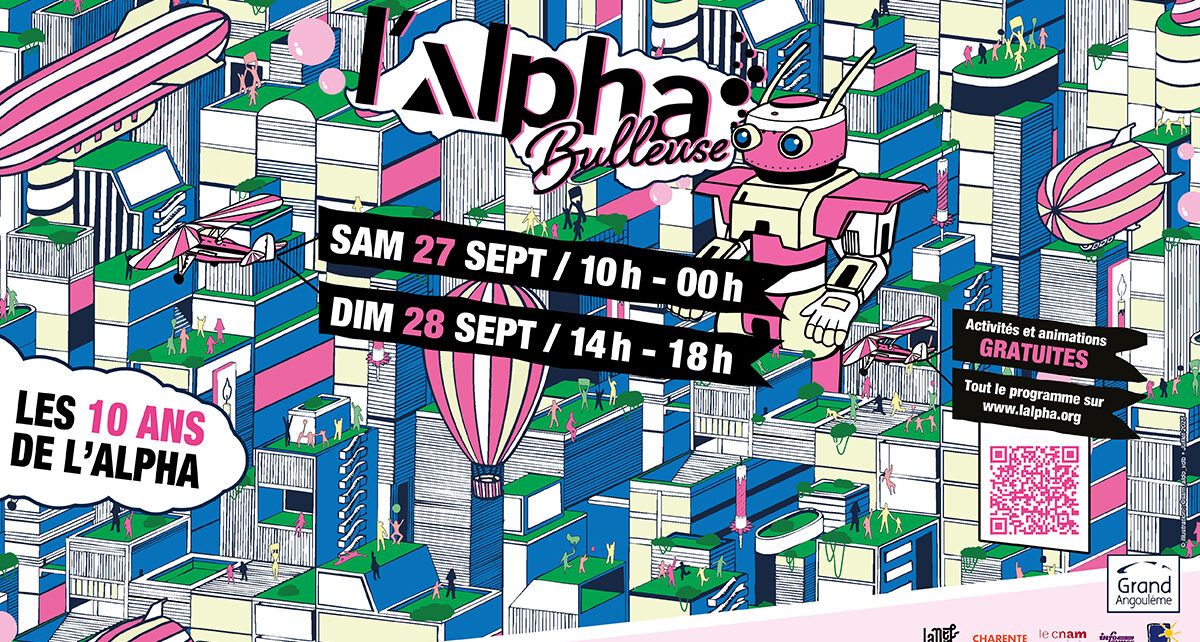 Fidèle à sa mission de “troisième lieu”, où chacun.e est invité.e à comprendre, créer, imaginer… et partager, l’Alpha vous invite à profiter d’un week-end de découverte, d’évasion et de festivités le samedi 27 septembre de 10h à minuit, et le dimanche 28 septembre de 14h à 18h.