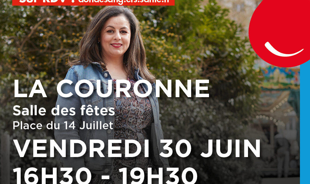 Journée mondiale des donneurs de sang ! Rendez-vous le 30 juin 2023 à la Salle des fêtes de La Couronne à partir de 16h30 : dondesang.efs.sante.fr
