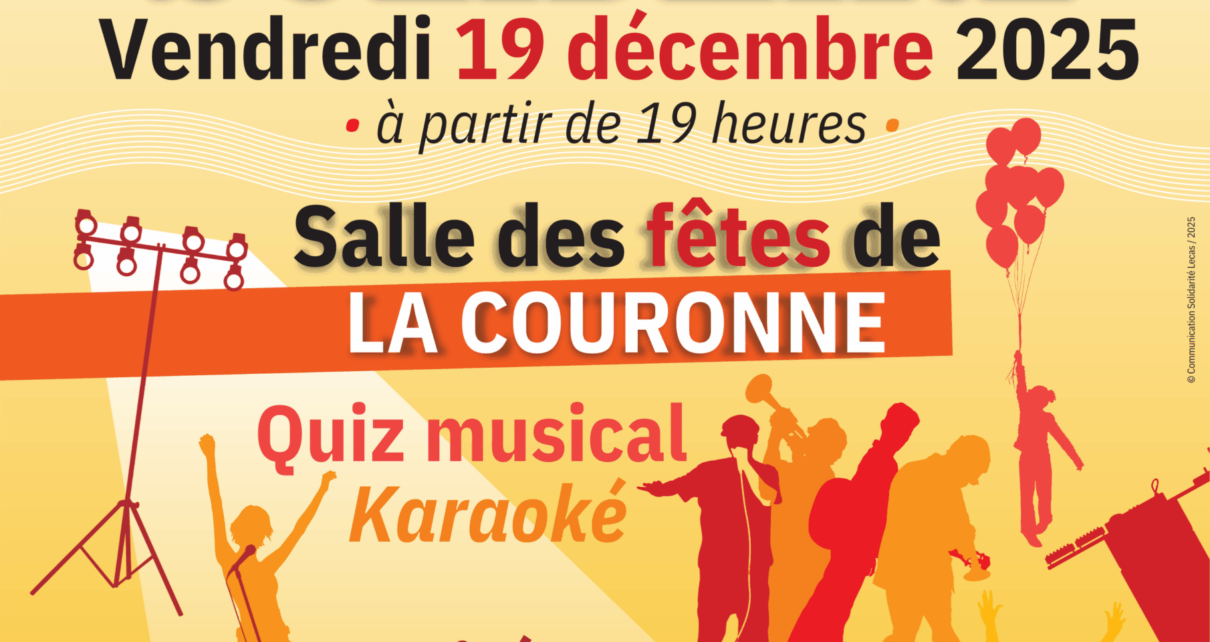 Grande Soirée Solidaire – Solidarité Lecas Vendredi 19 décembre 2025 À partir de 19h Salle des Fêtes Partage, bonne humeur et divertissements seront au rendez-vous lors de la Grande Soirée Solidaire Solidarité Lecas ! Venez nombreux·ses à la Grande Soirée Solidaire en soutien au employé de Lecas Au programme : Quiz musical pour tester […] Lire la suite »