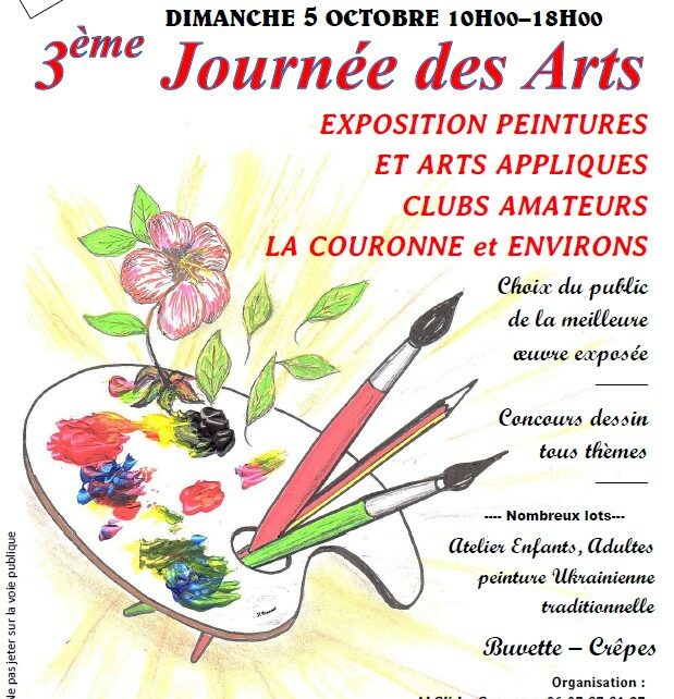 Le comité de jumelage La Couronne Itzehoe, l’association ALCK et Le Colibri – CSCS La Couronne organisent la 3ème journée des arts le samedi 4 octobre de 14h à 18h et dimanche 5 octobre de 10h à 18h à la Salle des fêtes. Programme Exposition de peintures et arts appliqués Atelier pour les enfants et […] Lire la suite »
