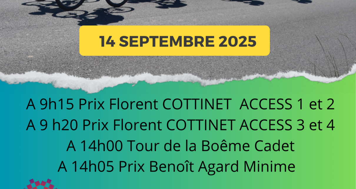 Courses cyclistes organisée par le COC Cyclisme le 14 septembre 2025. Les départs et les arrivées des coursses se feront Route de Claix Programme de la journée 9h à 11h45 : Prix Florent COTTINET Départ : 9h15 : Prix Florent COTTINET ACCESS 1 et 2 9h20 : Prix Florent COTTINET ACCESS 3 et 4 […] Lire la suite »