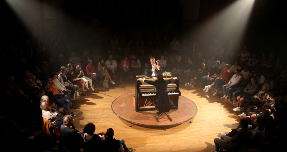 19h30 • Esplanade de la salle de sport • FLEAC LE DERNIER CONCERT / COMPAGNIE I.SI Au centre, une batterie et un piano attendent deux musiciens pour un concert. Apprêtés, échauffés, coiffés, costumés, tout est prêt à première vue, le duo se présente pour livrer la prestation attendue. Un univers sonore envahit l’espace, un grain […] Lire la suite »