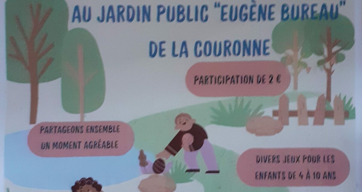 Chasse aux œufs solidaire Date : Mercredi 1 avril 2026 Horaire : 13h30 – 16h30 Lieu : Jardin public Eugène Bureau Participation : 2€ Le Secours populaire de La Couronne organise une chasse aux œufs pour les enfants de 4 à 10 ans, accompagnée de divers jeux ludiques : Chasse aux œufs Pêche à la […] Lire la suite »