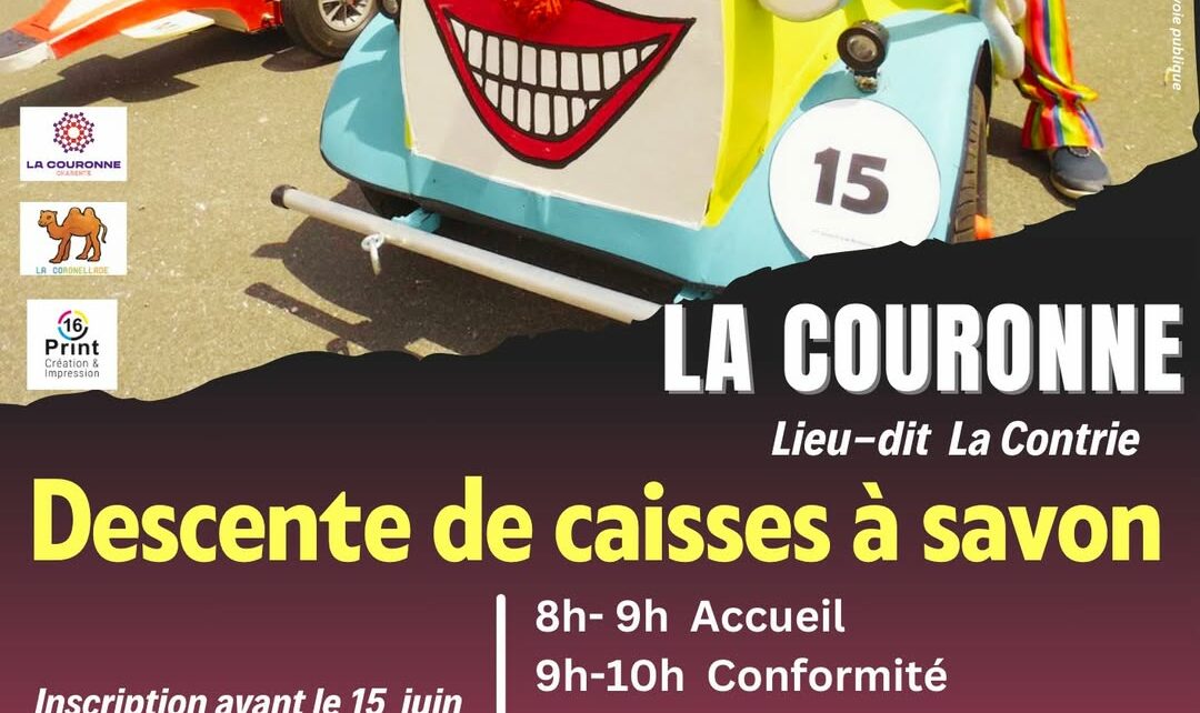 Descente de caisses à savon Le 28 juin 2025 Organisé par l’association La Coronellade Au lieu-dit La Contrie Programme  Descente de caisses à savon 8h- 9h Accueil 9h-10h Conformité 10h-12h Essais 13h-14h Caisses éphémères 14h-18h Descentes Inscription avant le 15 juin Claude par téléphone au 06 11 30 43 98 Soirée festive 20h « Music Passion […] Lire la suite »