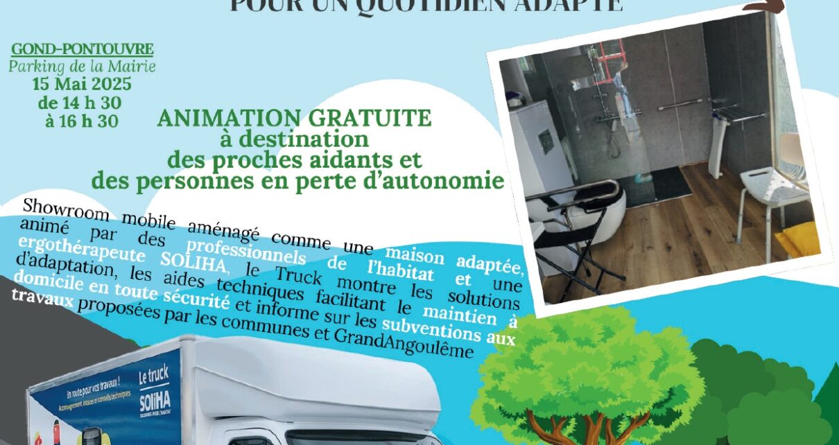 Rendez-vous le mercredi 14 mai 2025, de 9h à 12h Dans ce showroom mobile aménagé comme une vraie maison, SOLIHA Charente et une ergothérapeute vous présentent : Des idées d’aménagements simples et efficaces pour rester autonome chez soi Des équipements innovants pour faciliter le quotidien Des conseils personnalisés pour vous ou vos proches Les aides […] Lire la suite »