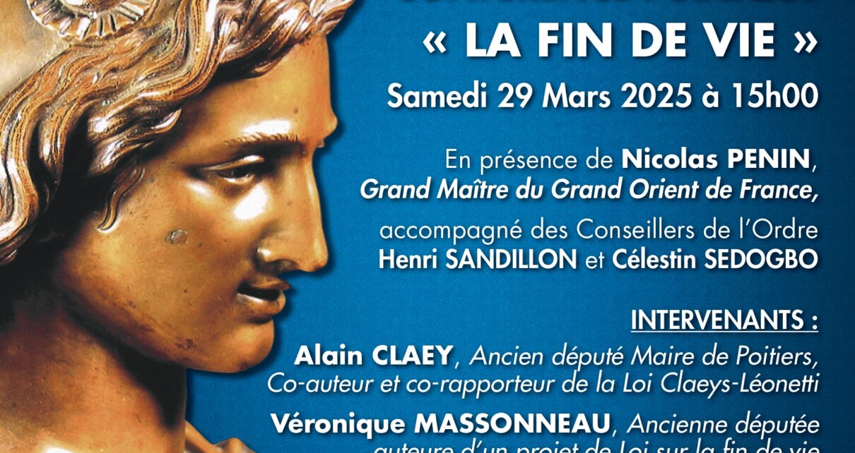 En présence de Nicolas PENIN, Grand Maître du Grand Orient de France, accompagné des Conseillers de l’Ordre Henri SANDILLON et Célestin SEDOGBO Intervenants Alain CLAEY, Ancien député Maire de Poitiers, Co-auteur et co-rapporteur de la Loi Claeys-Léonetti Véronique MASSONNEAU, Ancienne députée auteure d’un projet de Loi sur la fin de vie François LEBIHAIN, Médecin Urgentiste […] Lire la suite »